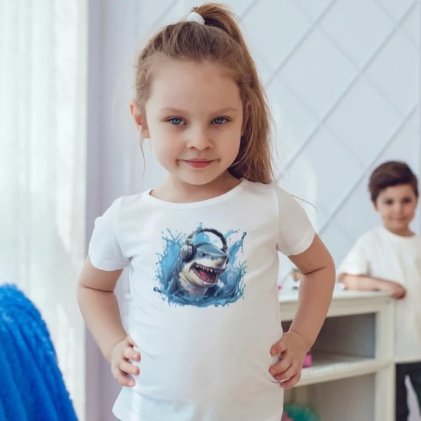 The highlight of this shirt is its whimsical design featuring a friendly shark grooving to the beat. With a lively color palette and eye-catching graphics, it sparks creativity and adds a touch of joy to your child’s daily attire. The dancing shark is sure to capture the imagination of your little one, turning every day into an exciting underwater dance party.